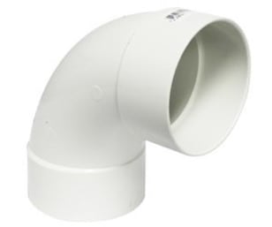 - Installed in a PVC White sewer piping system when a long turn 90 degree change of direction is needed from vertical to horizontal, horizontal to horizontal.
