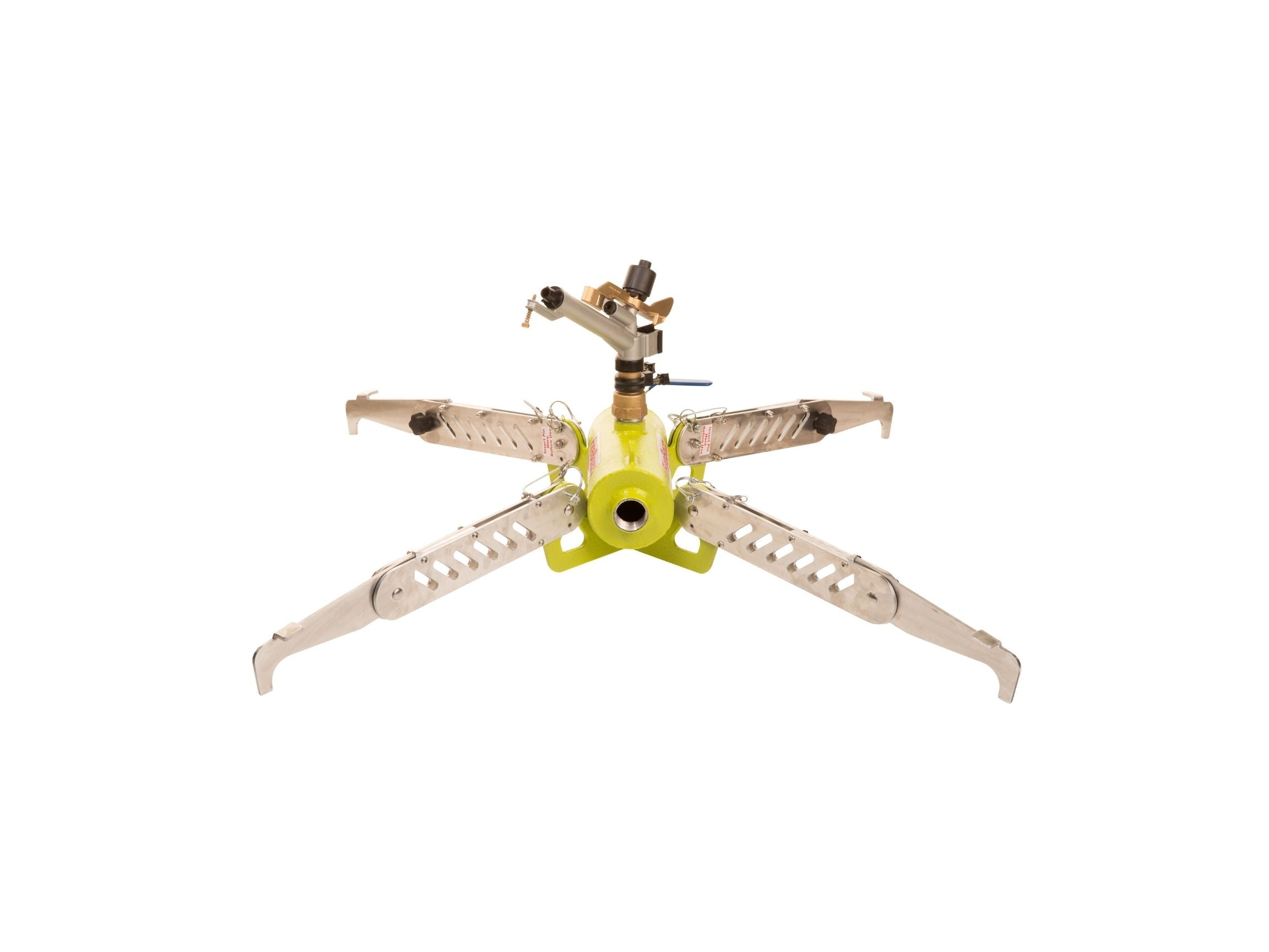 • This water cannon can shoot water up to a 110 feet radius with a full 360 degree traverse or partial arc. This can be connected to other units to expand the firebreak capacity. This unit weighs only 24lbs which makes it easy to move and setup.