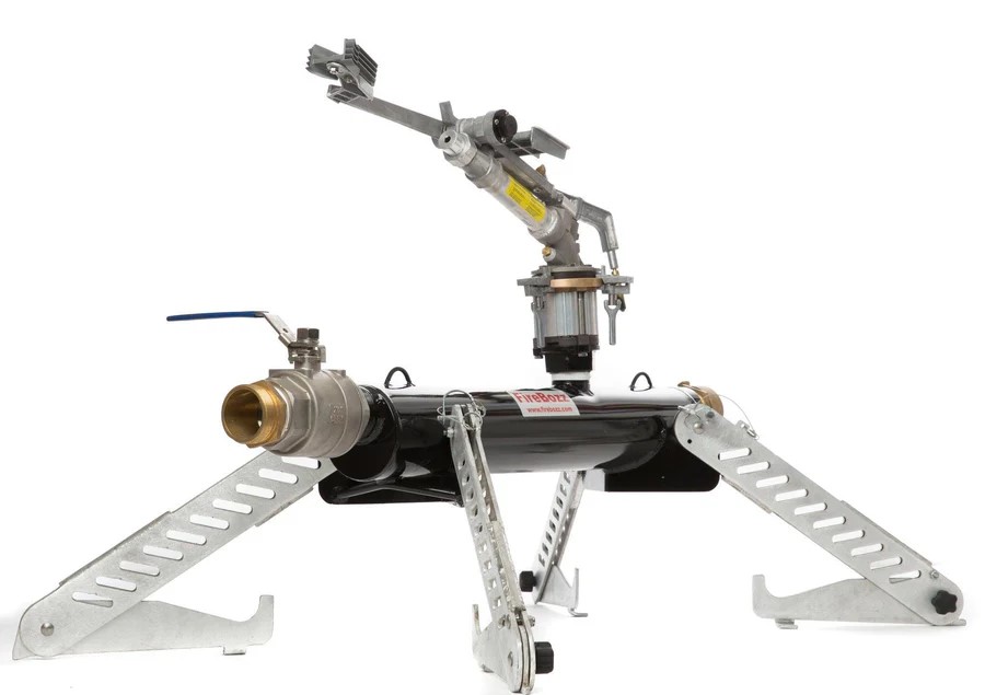 - This item is used to create a fire break from a100-300 feet radius with a full 360 degree traverse. This can be connection withg other units to expand the firebreak capacity. This is compatible with foam or retardants. 37-110gpm water usage weighting 60lbs.
