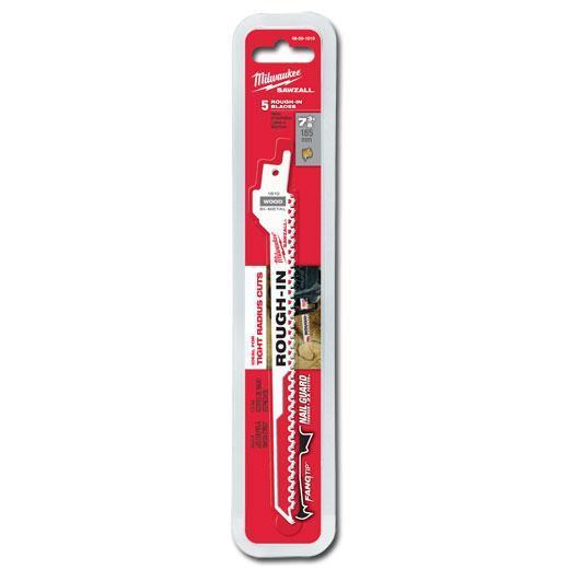 Milwaukee® 48-00-1610 SAWZALL® Rough-In Tapered Back Reciprocating Saw Blade, 7-3/8 x 1/2 in, 5 TPI, Universal/Toothed Edge Tang,hite