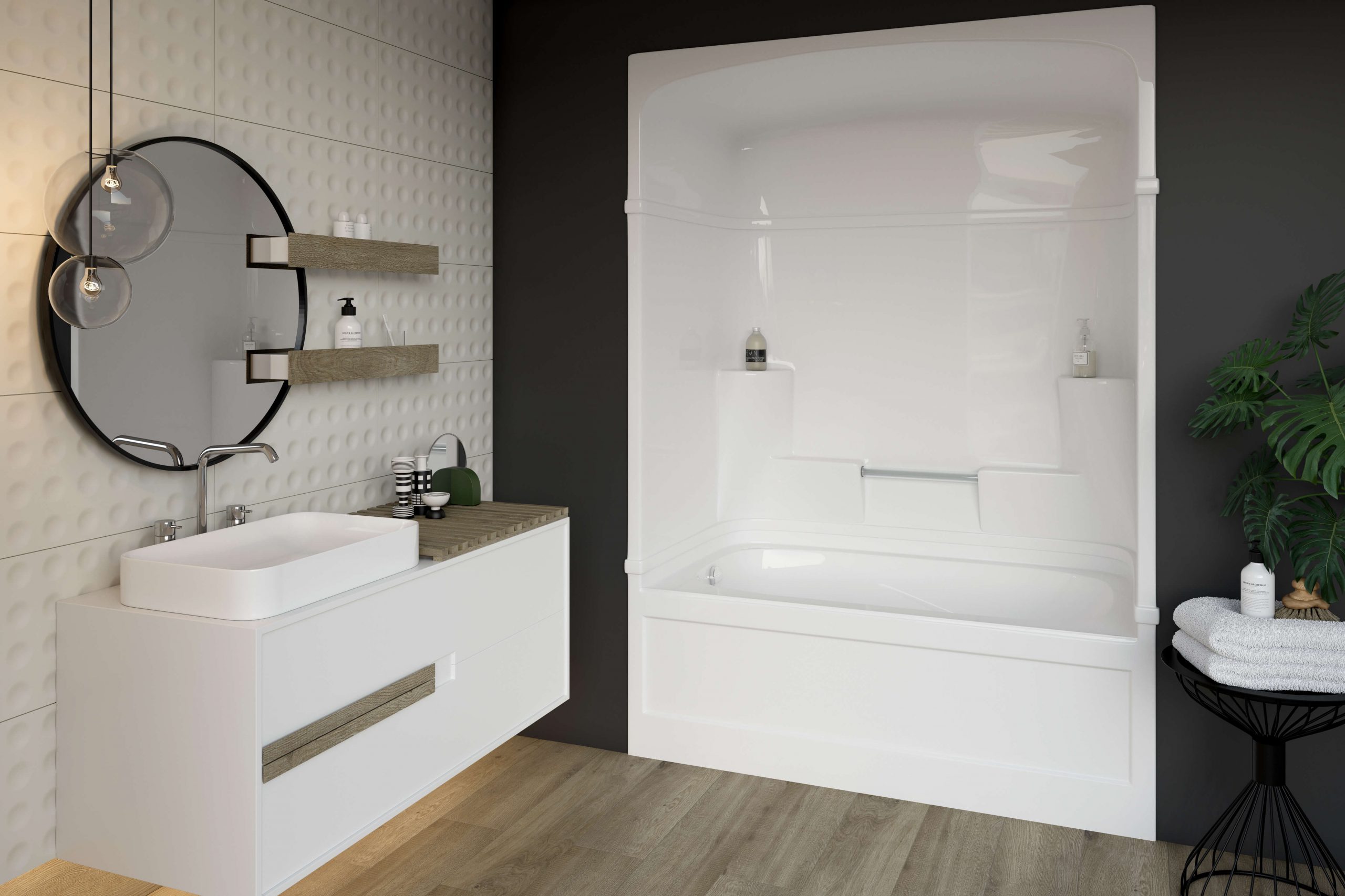 - Built-in acrylic towel bar