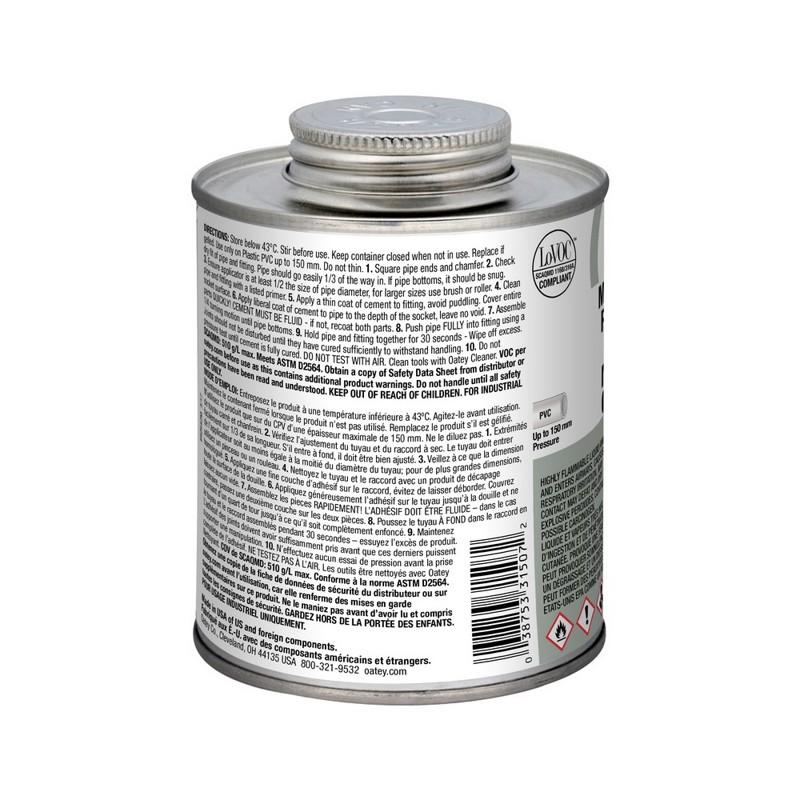 Oatey® 31507 Medium PVC Cement, 473 mL Container, Gray