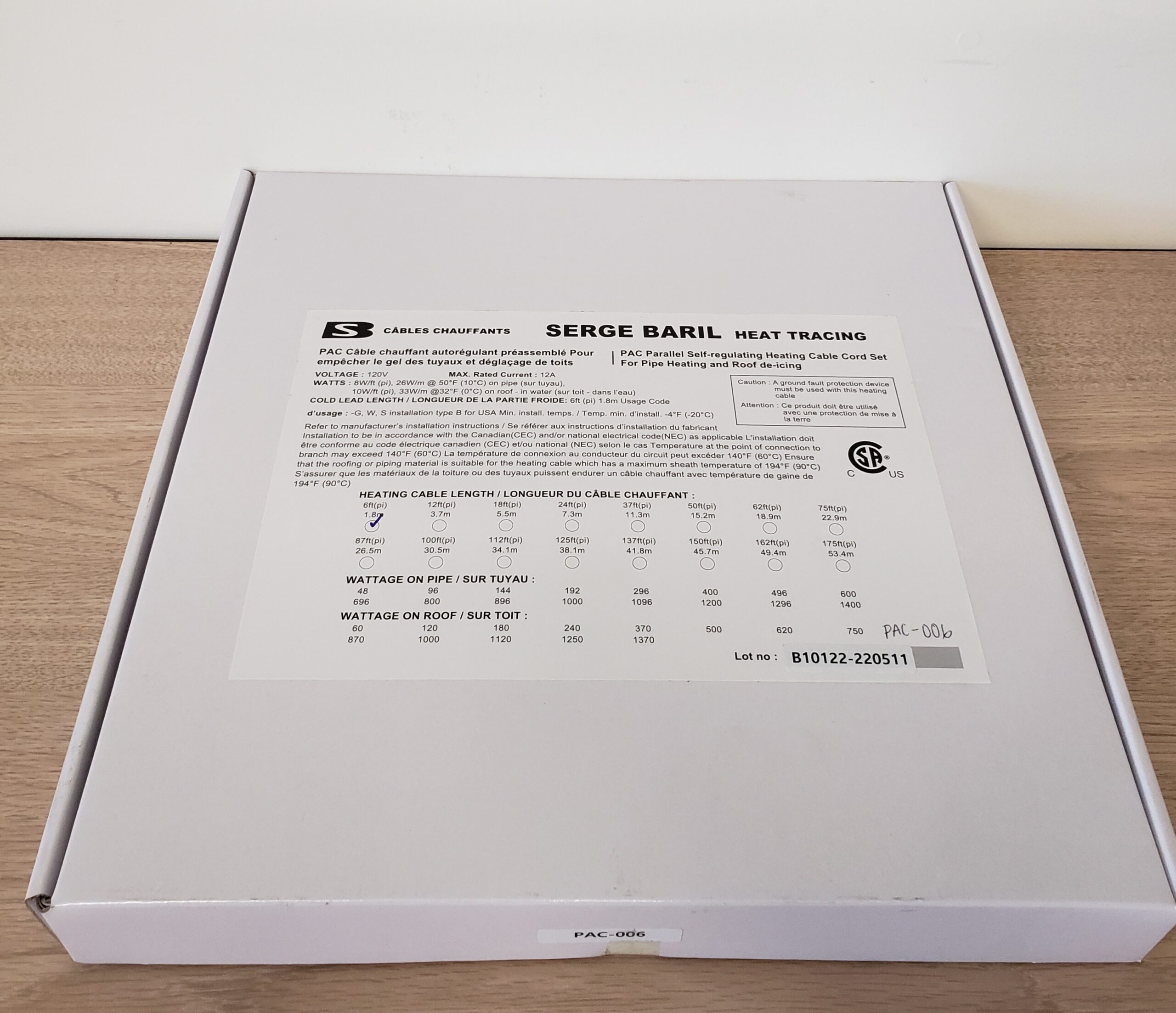Be the first to review “SERGE BARIL PAC-6/10-6 Heat Tracing Cable, 120 V”