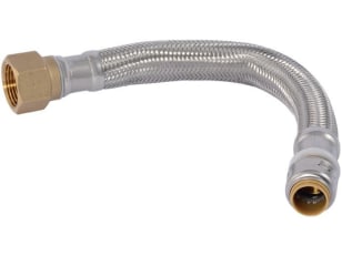 SharkBite Max™ UR3568FX12CA Braided Flexible Connector Hose, 1/2 x 3/4 in, Push-Fit x FNPT, 12 in L, 200 psi Working, Stainless Steel/EPDM