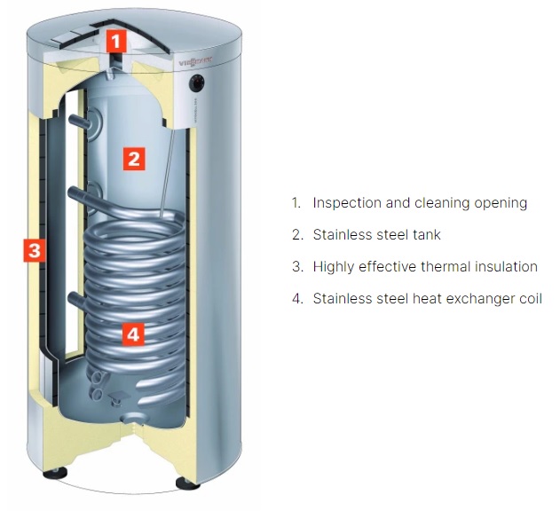 Be the first to review “Viessmann Manufacturing 7720343 Single Coil Indirect-Fired Domestic Hot Water Storage Tank, Vitocell 300-V, 53 USG”