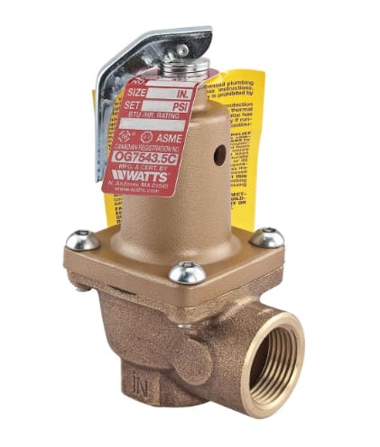 Watts F274435 174A Pressure-Relief Valve, 3/4 in, FNPT x FNPT Drain Port, 50 psi, Bronze Body